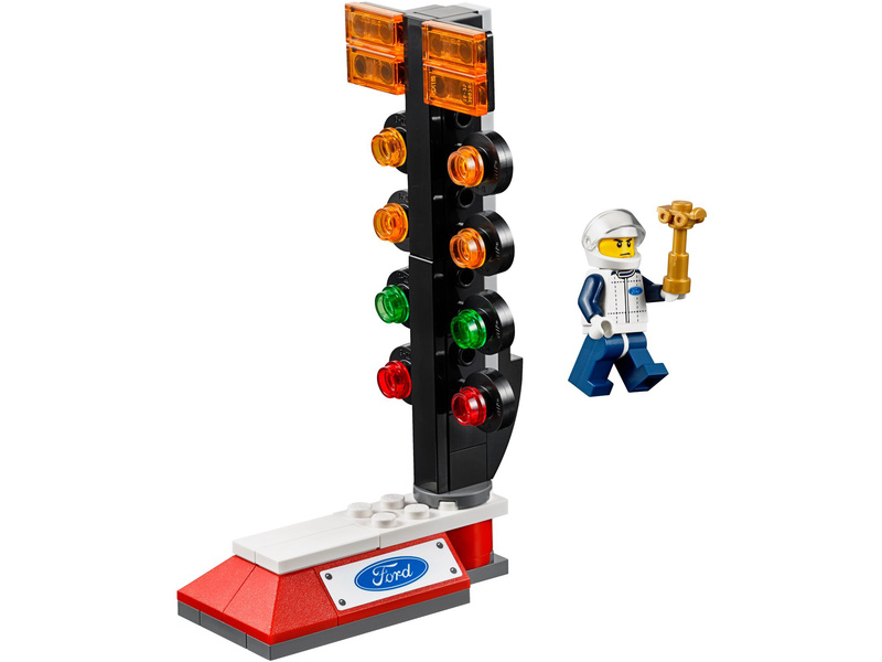 - Starting lights tower features translucent red, amber and green ‘light' elements and authentic Ford logo stickers.