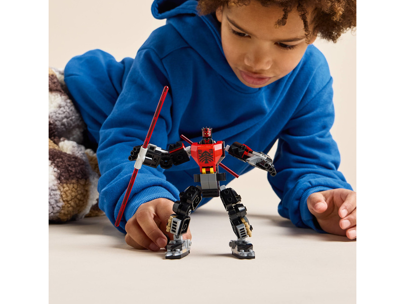 Let kids explore the dark side of the Force in the LEGO® Star Wars™ universe as they play with the Darth Maul Mech building toy for boys, girls and fans aged 6 years old and up (75411). This quick-build, posable mech toy is designed to look like Darth Maul as he appeared in Star Wars: The Clone Wars™ battles to take over Mandalore. It has an opening cockpit for the Darth Maul LEGO Star Wars minifigure, a clip for his double-bladed red Lightsaber™, and gripping hands to hold a large, mech-sized, double-bladed red Lightsaber™. A LEGO Star Wars Probe Droid that attaches to the back of the mech adds to the pretend play possibilities.