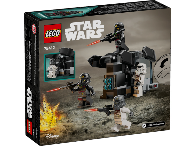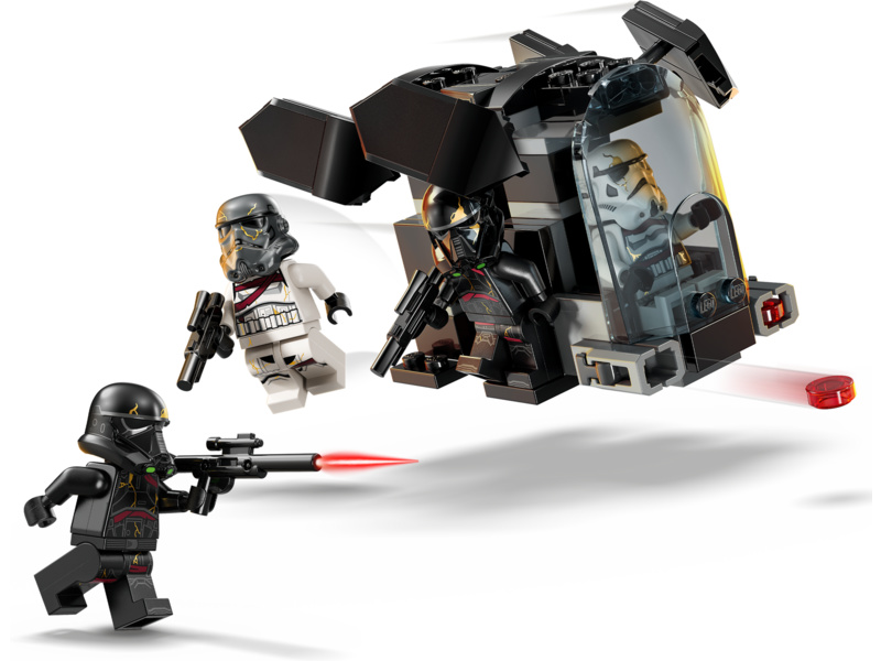 Let kids build their own platoon and transport them into LEGO® Star Wars: Ahsoka™ battles with the Death Trooper & Night Trooper Battle Pack (75412). A cool small gift for boys, girls and any fans aged 6 years old and over, the set includes a dropship building toy with space for 4 LEGO minifigures in the back, 2 stud shooters and a LEGO minifigure cockpit with a removable canopy. The 4 included LEGO Star Wars™ minifigures – 2 Death Troopers and 2 Night Troopers – each have a blaster that can be attached next to them in the back of the dropship, ready for pretend-play battles.