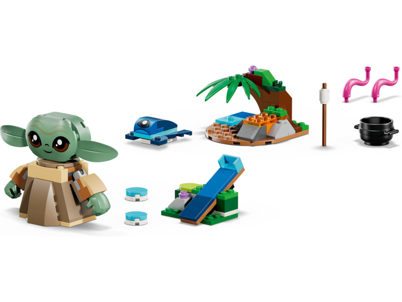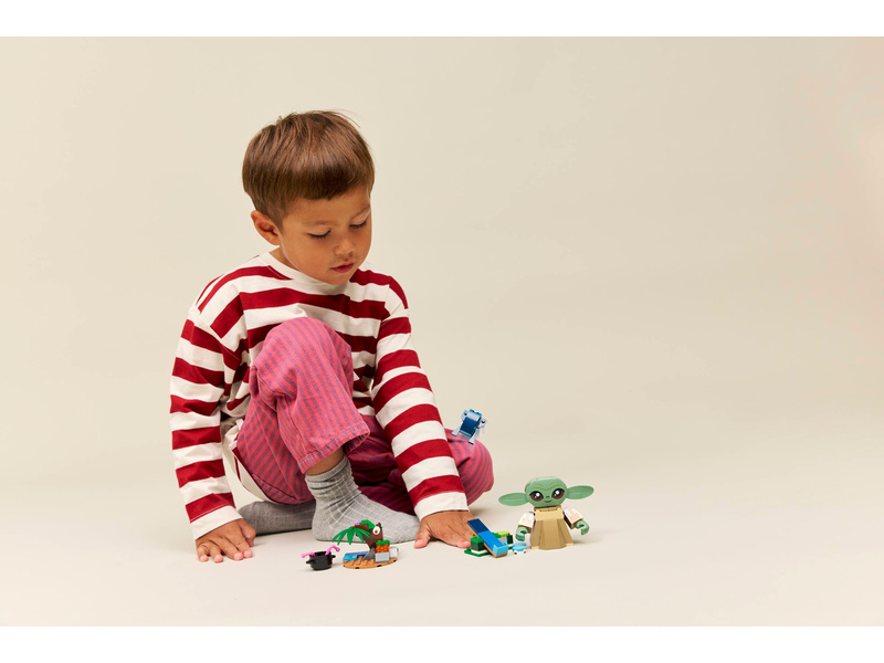 Give kids ages 4 plus an inspiring first build-and-play experience in the LEGO® Star Wars™ universe with this toy building set: Grogu’s Homestead (75443). A great small gift for preschool boys, girls and Star Wars fans, it features an easy-to-build, posable Grogu figure, a Sorgan frog, 2 mini builds plus authentic accessories. Send the Sorgan frog flying with the catapult. Recreate Star Wars: The Mandalorian™ scenes around the fireplace with a cooking pot, 2 tentacles, a marshmallow on a stickand 2 blue macaron accessories. One of the macarons can fit inside Grogu’s belly. The simple pictorial instructions in this set are ideal for children who are just learning to read. For added digital fun, the LEGO Builder app has zoom and rotate tools that let kids visualize the builds as they piece them together (perhaps with a little help from an adult or older sibling). Set contains 107 pieces.