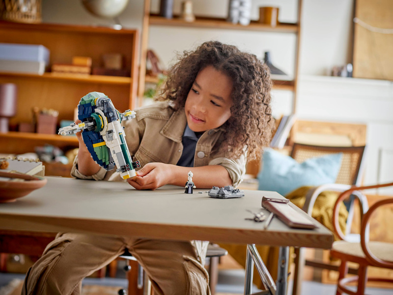A top Star Wars™ gift for kids, the set includes 3 LEGO minifigures: Jango Fett with 2 blaster pistols and a jetpack, Young Boba Fett and Lama Su. There is also a service cart that can be used to move the starship in play scenarios or as a stand to create fantasy decor between playtimes.