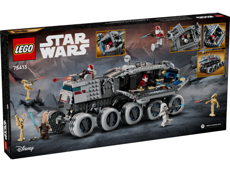 Let kids lead their own heroic Star Wars: The Clone Wars™ battle missions with the Republic Juggernaut buildable transport vehicle toy (75413). A cool LEGO® Star Wars™ gift for boys, girls and fans aged 9 and over, this impressive 10-wheeler is steered by simply tilting the model as you move it, and it has easy access to the detailed interior.
