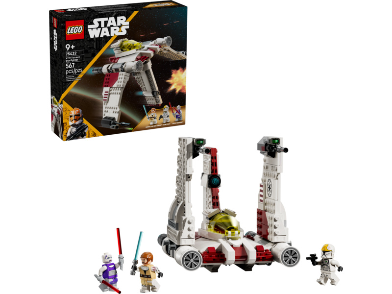 Team up with hero character General Obi-Wan Kenobi against Asajj Ventress, and swoosh into LEGO® Star Wars: The Clone Wars™ action with the V-19 Torrent Starfighter building toy for kids (75432). An awesome Star Wars™ gift idea for boys, girls and any fans aged 9 and over, the starfighter features 2 stud shooters and adjustable wings for flight and landing modes. The central wing can also be used as a handle for ‘flying’.