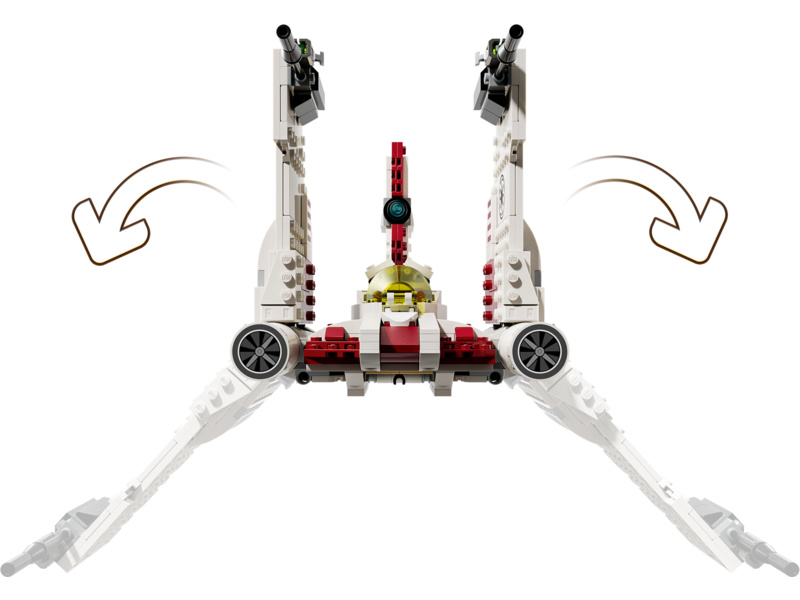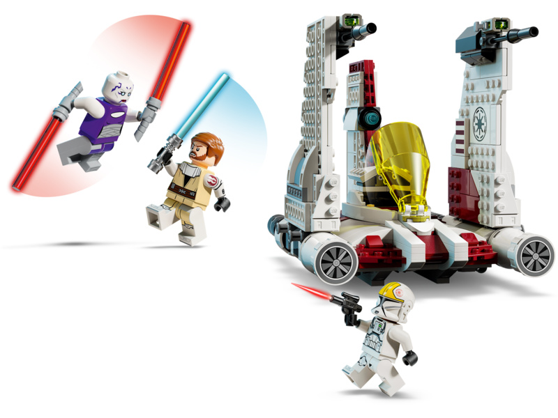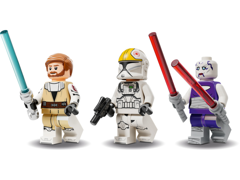 The buildable vehicle playset features 3 LEGO Star Wars minifigures, including Asajj Ventress with 2 red Lightsabers™ with special curved hilts and General Obi-Wan Kenobi with a blue Lightsaber™ for action-packed duels.