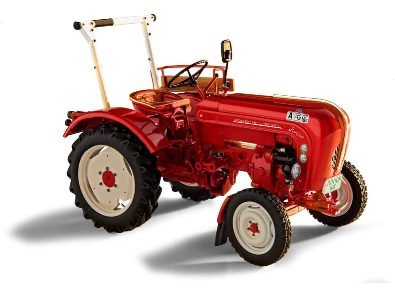 Porsche Junior is a legendary tractor manufactured by Porsche-Diesel from 1952 to 1963. It was powered by an air-cooled single-cylinder diesel engine with a capacity of 822 cc and an output of 14 hp. The transmission had 6 forward gears and two reverse gears.