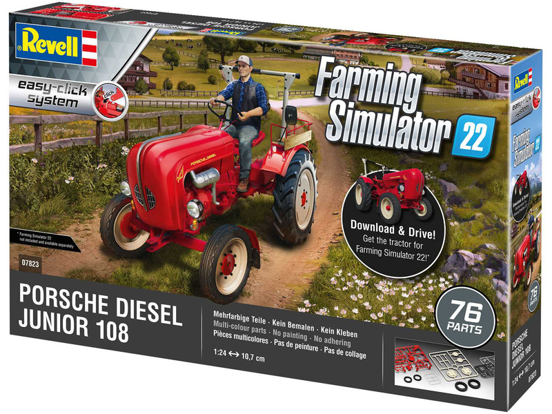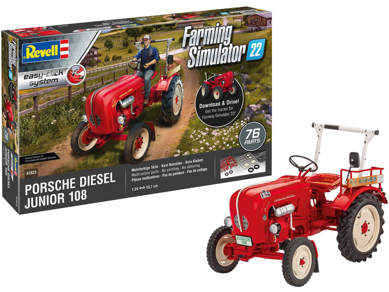 Revell 67823 snap-in model - Porsche Junior 108v 1:24 scale tractor. Length 107 mm, number of pieces 76.