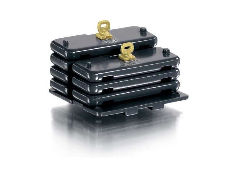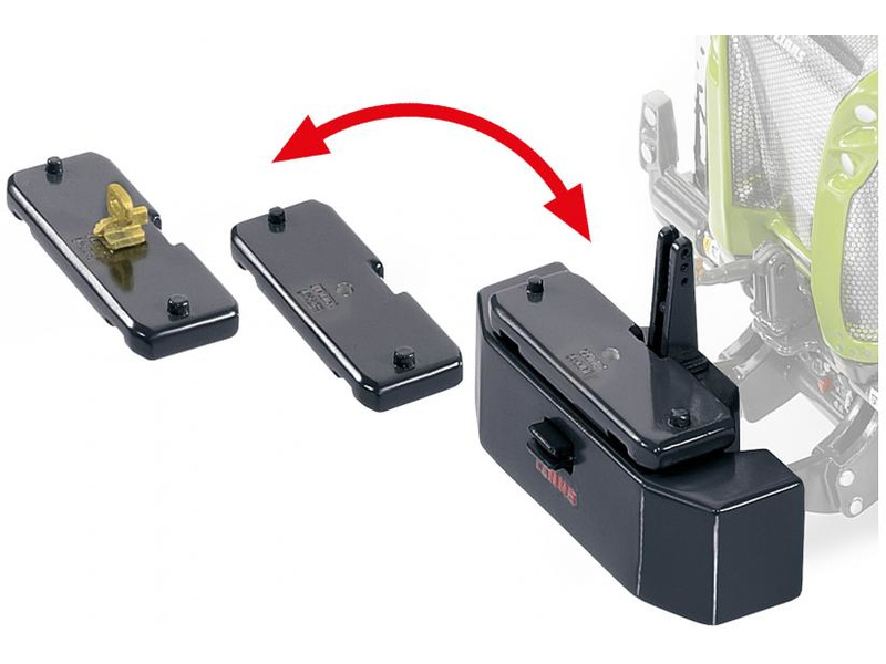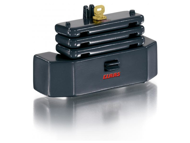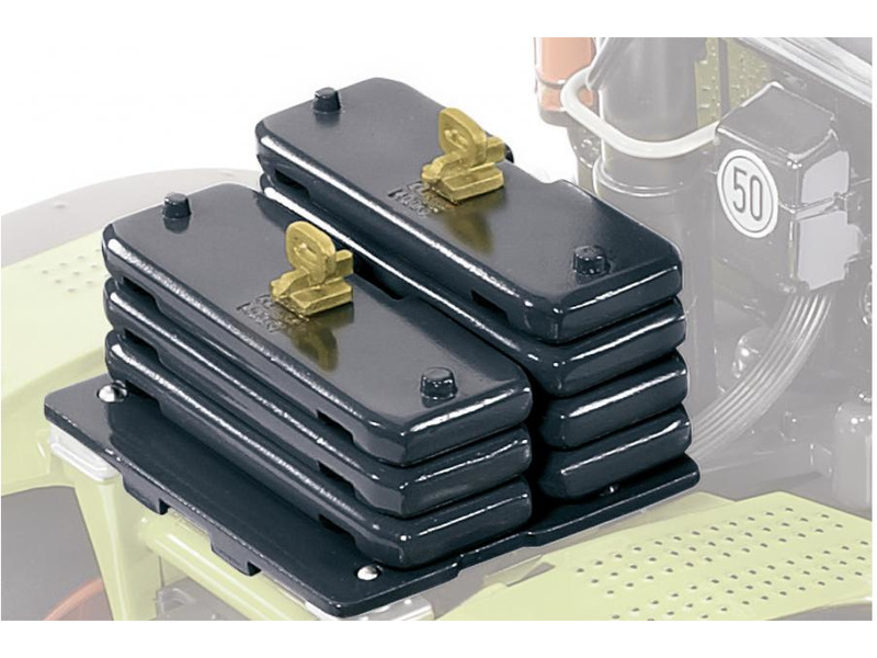 Ballast load for Wiking Claas Xerion tractor model 1:32. Load plates (10 pcs) with three lifting eyes and a bracket for the front hitch and a base plate for mounting on the rear of the Claas Xerion model.